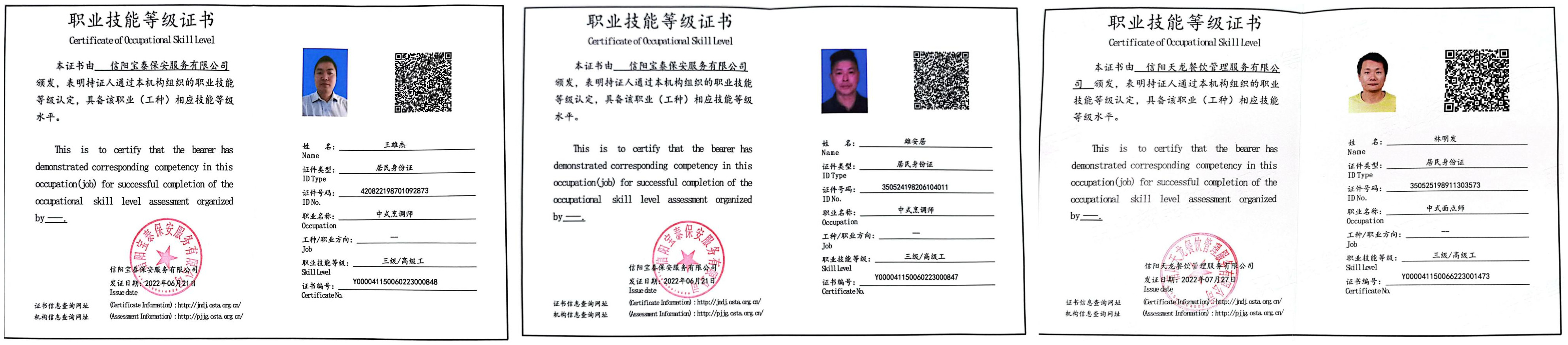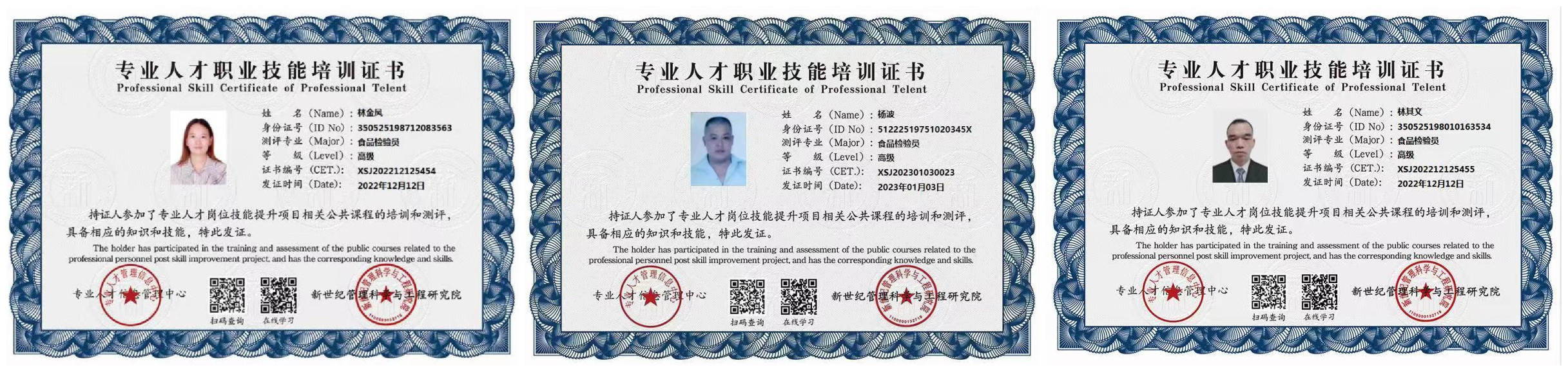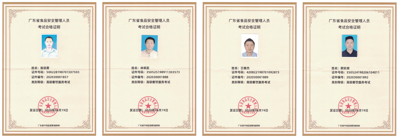 公司擁有一批專業(yè)素養(yǎng)人才,如:高級食品安全管理員、營養(yǎng)師、食品檢驗員、中式/西式烹調(diào)師、中式/西式面點師。確保每個項目的服務(wù)品質(zhì)。